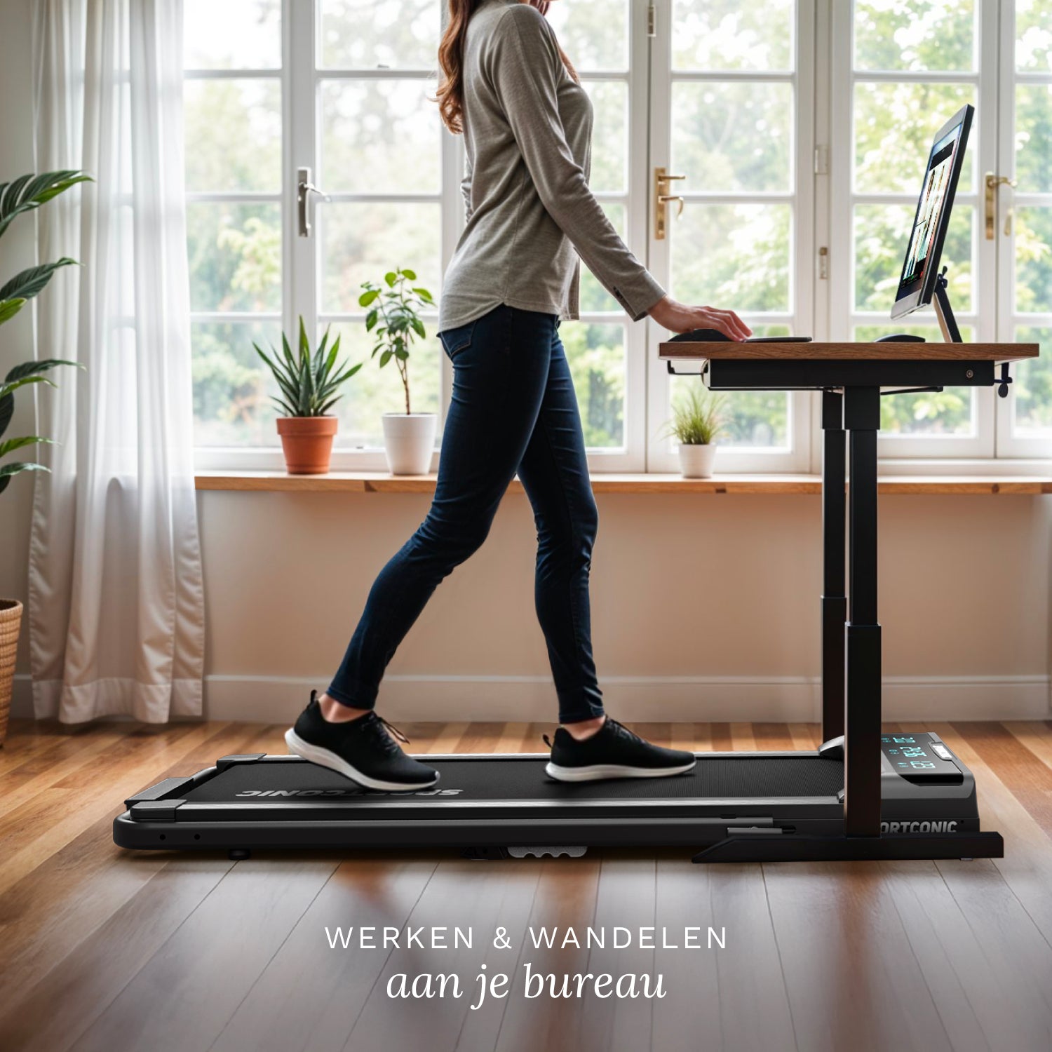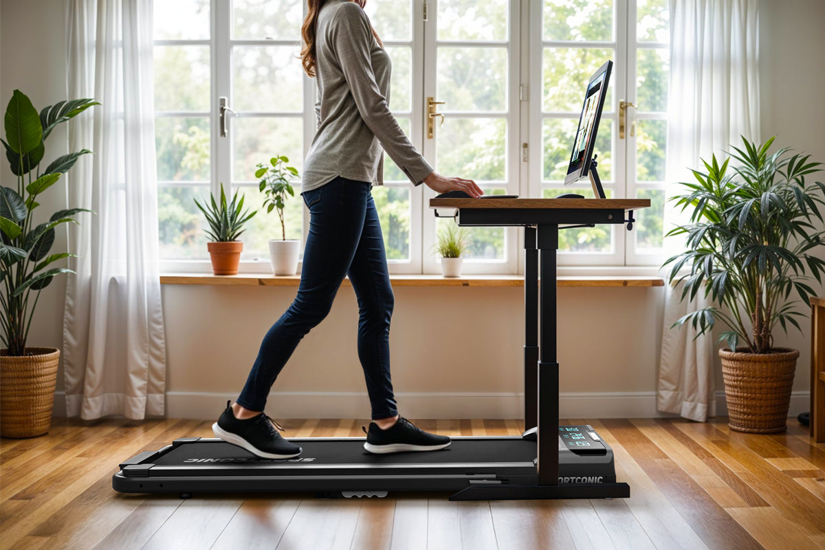 Alterna senza sforzo tra lavoro sedentario e movimento attivo, senza interrompere la tua routine. Il tapis roulant si adatta perfettamente a una scrivania sit-stand e ti permette di camminare mentre lavori, ti incontri o fai telefonate.