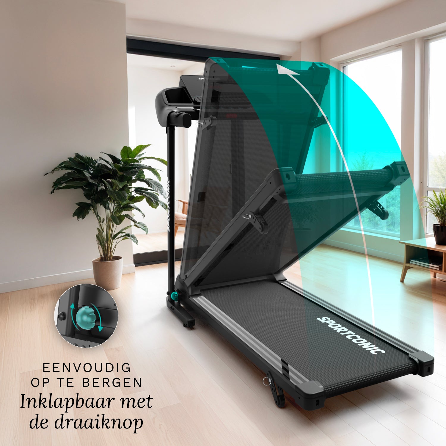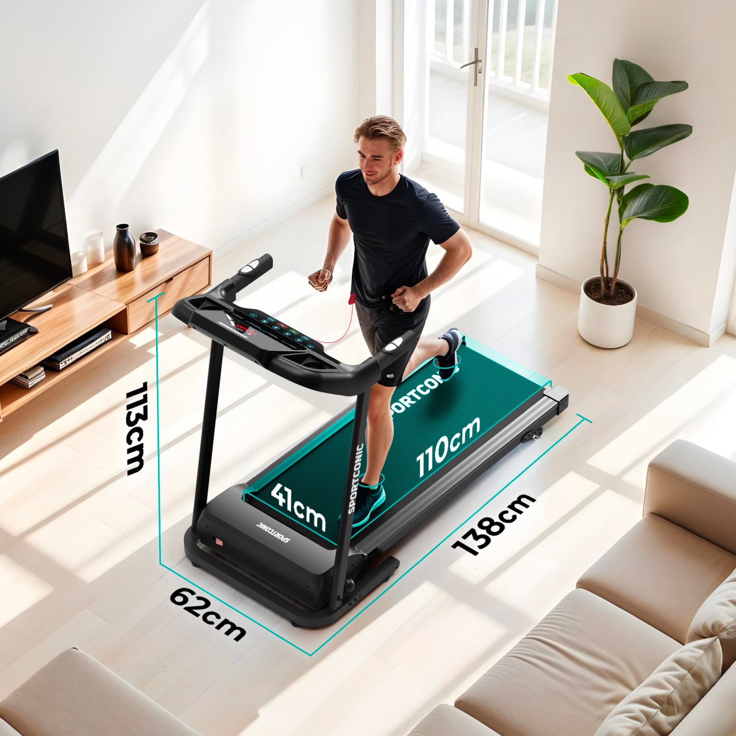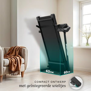 Tapis roulant pieghevole con velocità fino a 12 km/h e 3 livelli di inclinazione. Silenzioso, potente e salvaspazio, ideale per l'allenamento a casa o la riabilitazione.