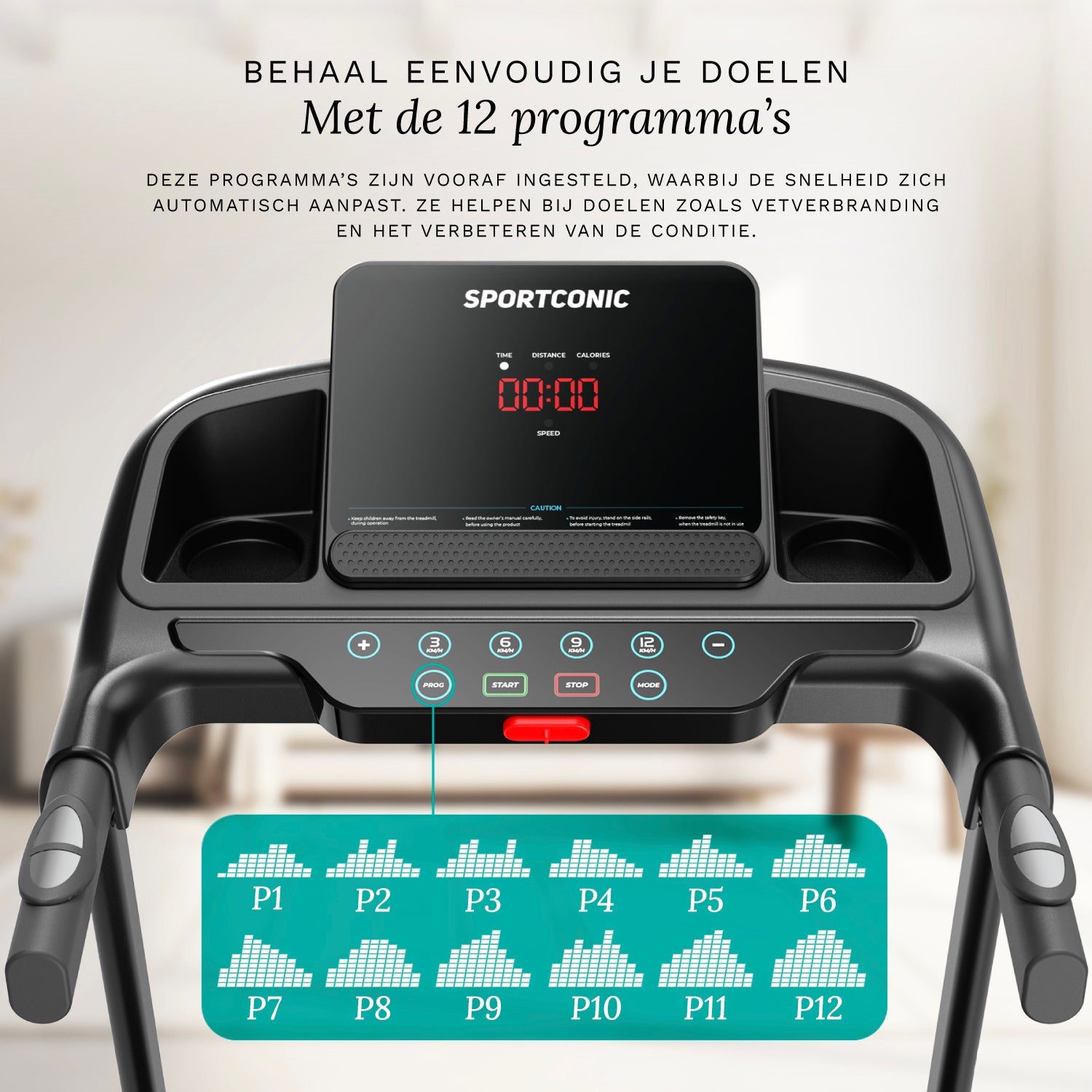 Il pannello di controllo consente di regolare facilmente la velocità e di scegliere tra 12 programmi di allenamento pre-programmati , adatti a diversi obiettivi, come la combustione dei grassi, la resistenza o l'allenamento a intervalli.