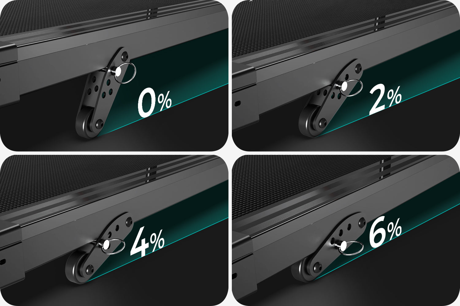 Con velocità che vanno da 1 a 12 chilometri orari, il tapis roulant è ideale sia per camminare che per correre. Vuoi una sfida in più? Imposta l'inclinazione al 2, 4 o 6% e brucia fino al 60% di calorie in più rispetto a una superficie piana.